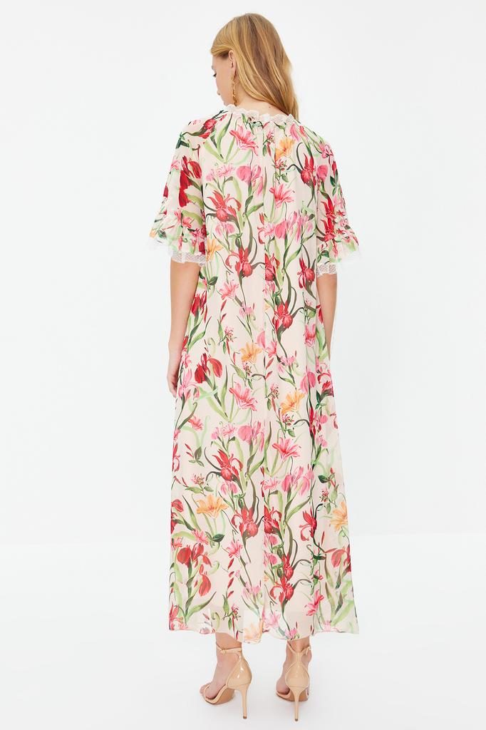 Женское платье-хиджаб, новый сезон, модное шифоновое платье цвета экрю с короткими рукавами и рюшами на подкладке