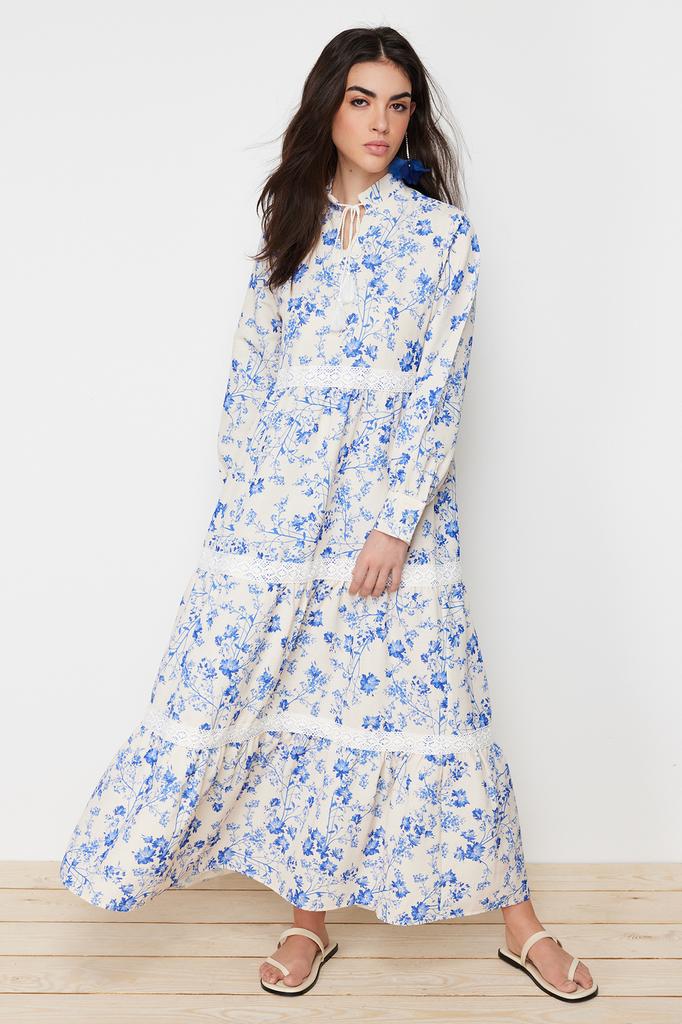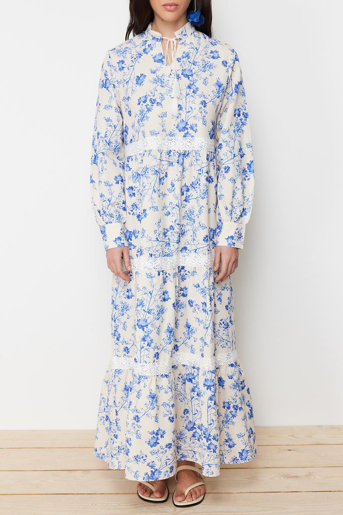 Женское платье-хиджаб, новое сезонное модное бежевое льняное тканое платье с цветочным принтом