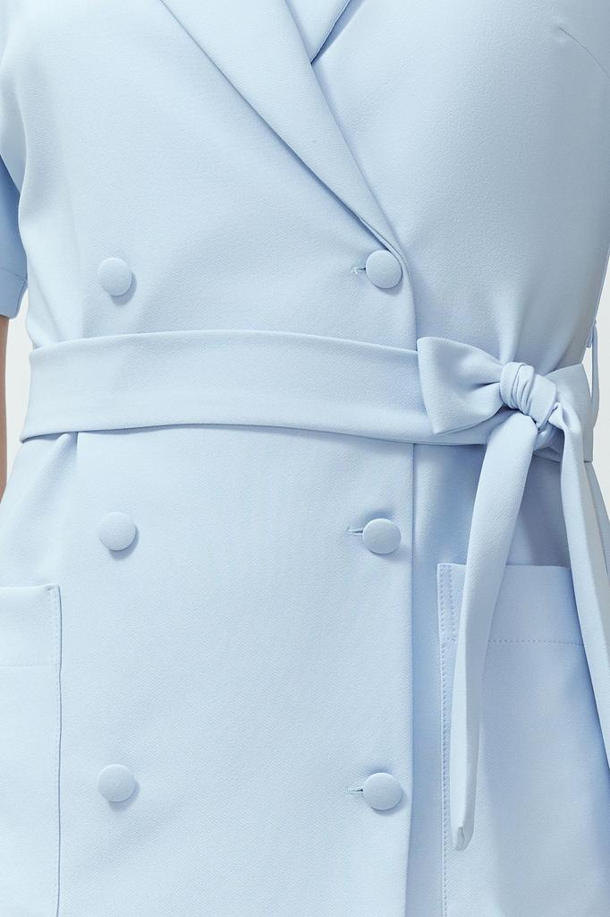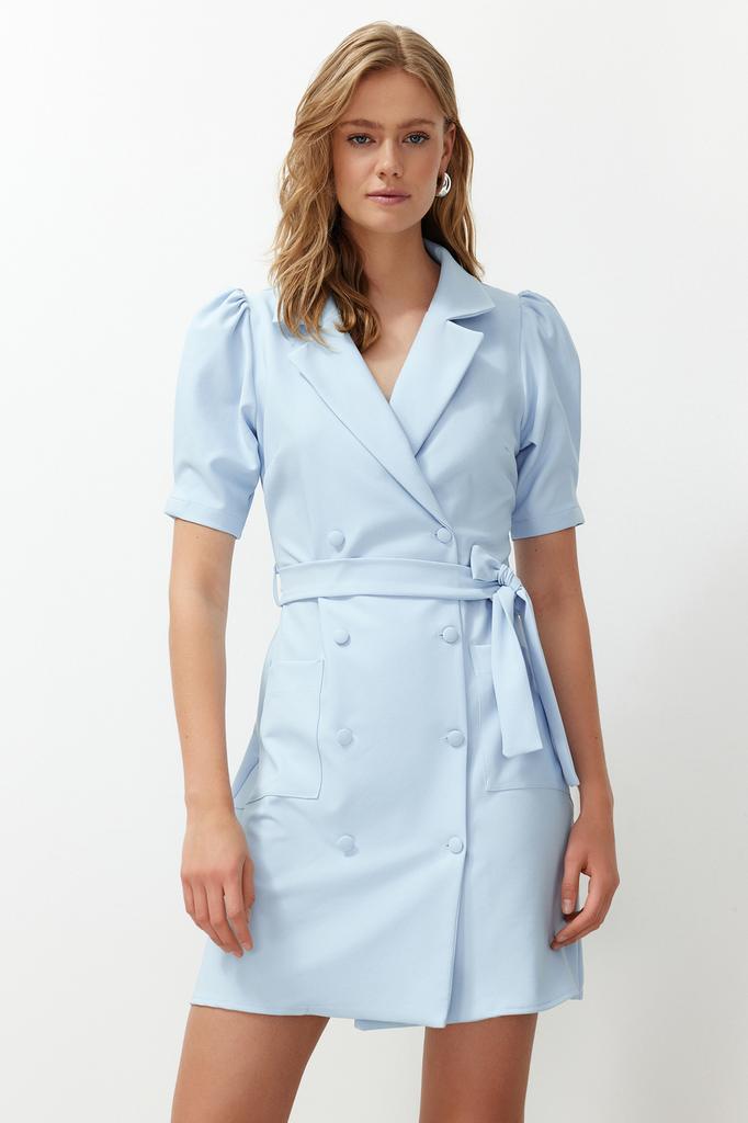 Женское платье, новый сезон, модная синяя мини-тканая куртка с поясом, тканое платье