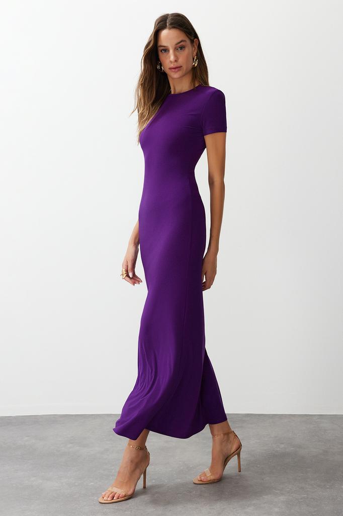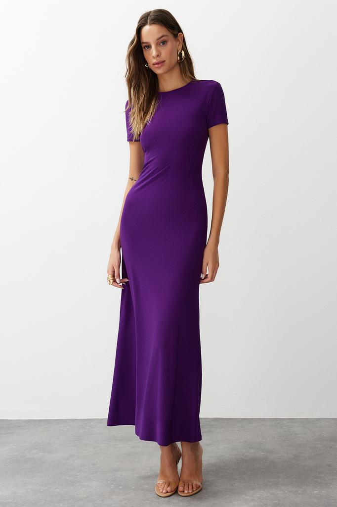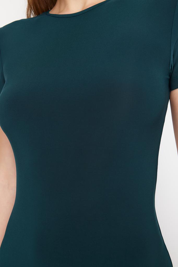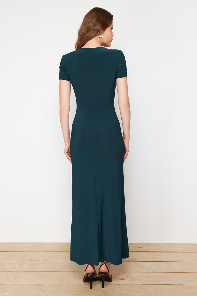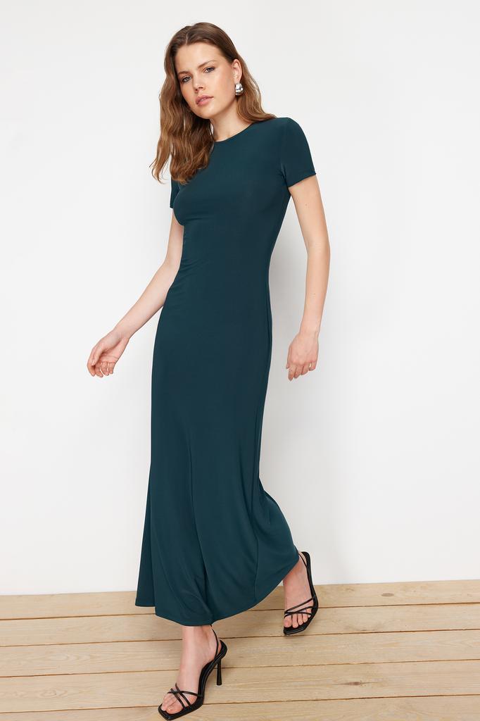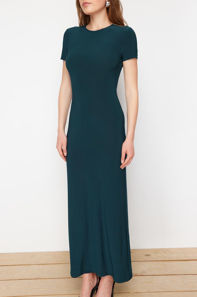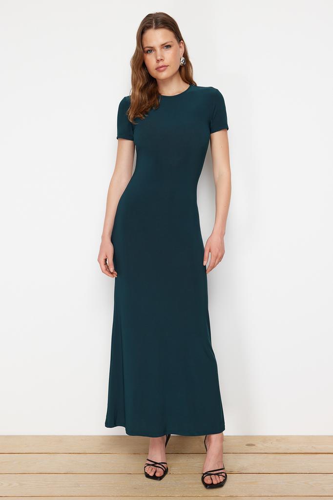 Женское платье, новое сезонное модное изумрудно-зеленое облегающее платье с коротким рукавом и круглым вырезом, гибкое трикотажное платье макси