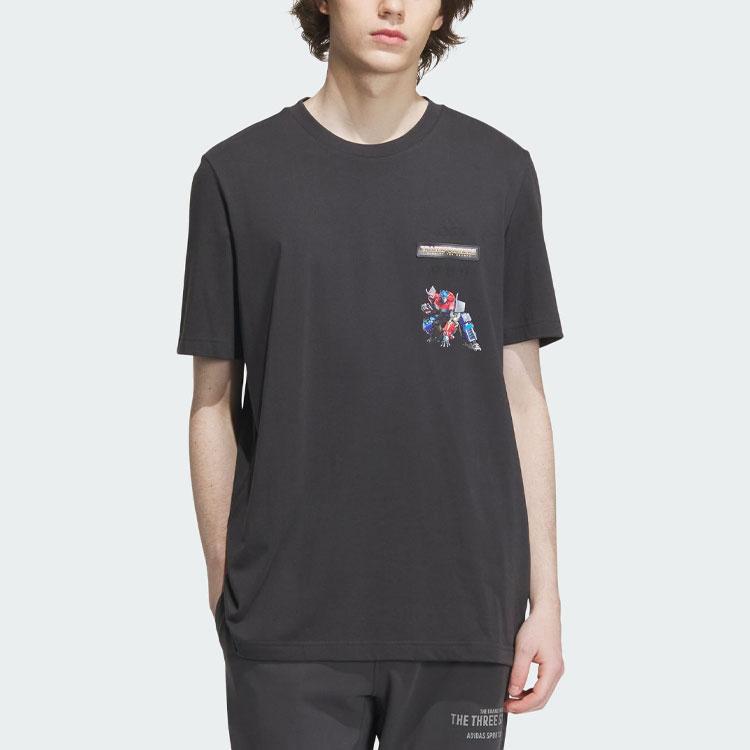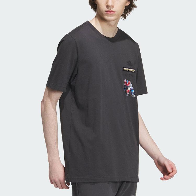Adidas Футболка Трансформеры с мультяшным принтом, спортивная футболка с короткими рукавами, мужские топы, карбон-черный IK3503