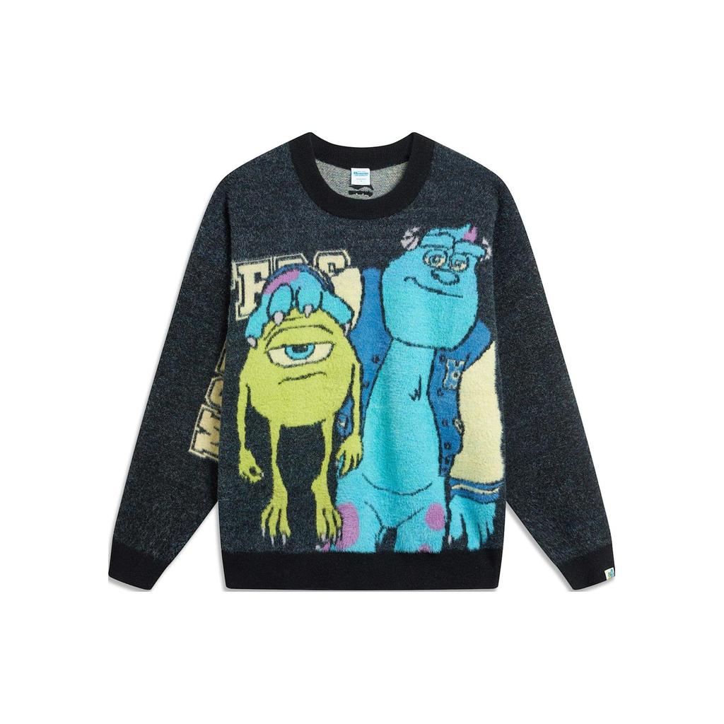 Li-Ning Совместный бренд Disney с мультяшным принтом, теплый флисовый пуловер свободного покроя с длинными рукавами, трикотажные мужские топы, черные AMBT141-1