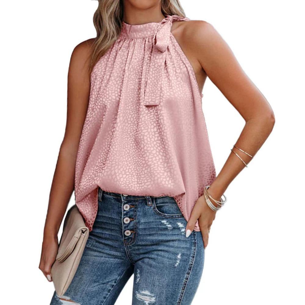 GMXIA Женские модные повседневные летние блузки и рубашки без рукавов с леопардовым принтом