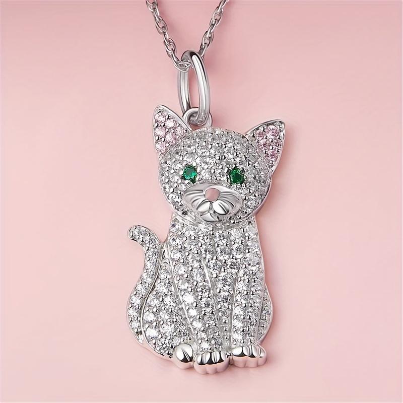 Изысканное милое и модное серебристое ожерелье с подвеской в виде кота, инкрустированное имитацией циркона, ожерелье для девочек, праздничные подарки на день рождения