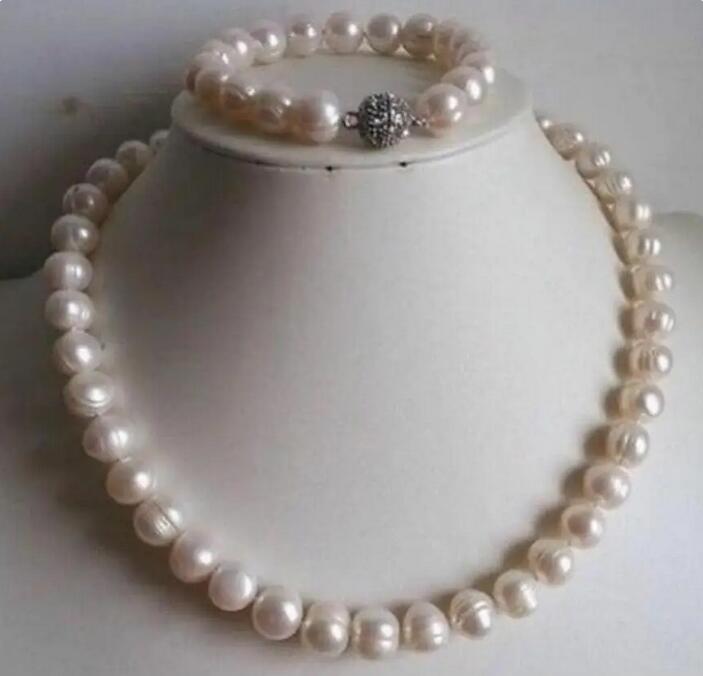 Горячий набор браслетов из настоящего белого пресноводного культивированного жемчуга 9-10 мм