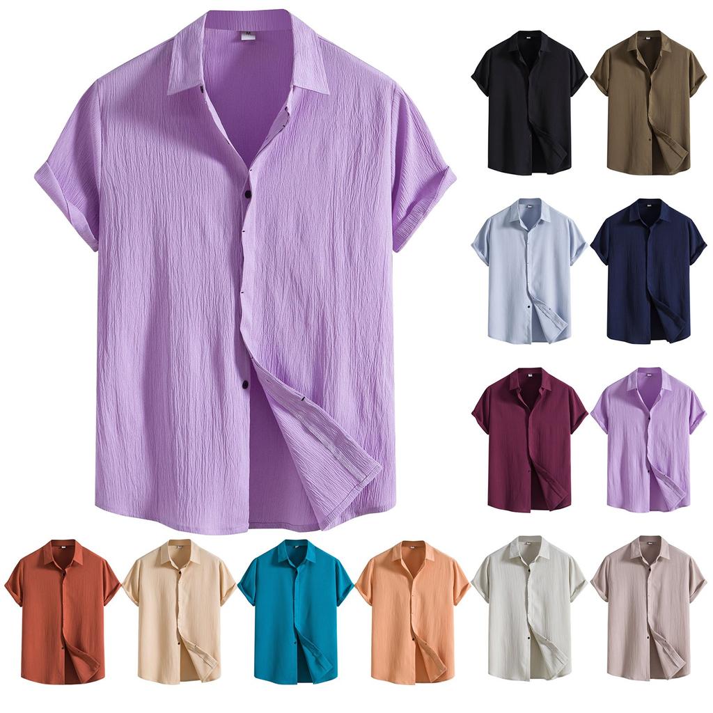 Мужская весенне-летняя повседневная однотонная рубашка с коротким рукавом, свободная рубашка с отложным воротником — купить товар онлайн с бесплатной доставкой по всему миру!