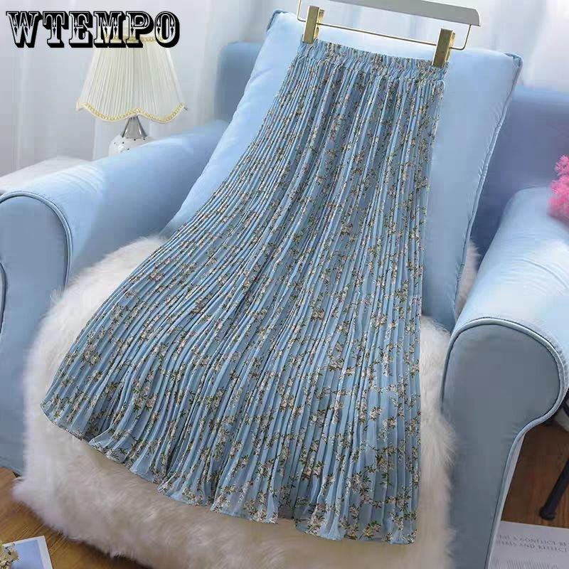 Сетчатая юбка с цветочным принтом, женская одежда, летняя элегантная винтажная юбка-миди на молнии с высокой талией, повседневная плиссированная юбка трапециевидной формы