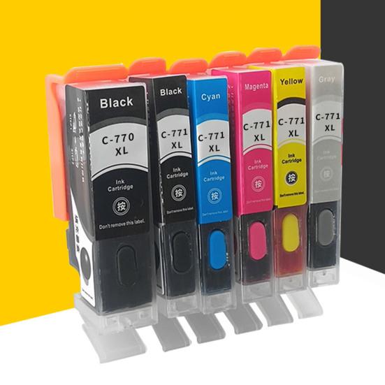 Чернильный картридж высшего качества: Улучшите качество печати с помощью этого многоразового картриджа, включающего 1*CLI-771XL синий, 1*CLI-771 XL пурпурный, 1*CLI-771 XL желтый, 1*CLI-771 XL маленький черный, 1*CLI-771XL серый, И 1 * маленький черный картридж CLI-771 XL. Наслаждайтесь яркими и долговечными цветами для удовлетворения всех ваших потребностей в печати.