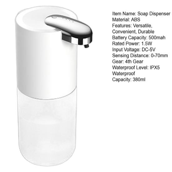 Подходит для большинства мыл, таких как очищающее средство для лица и шампунь.. Этот электрический дозатор мыла очень подходит для любого места, включая школьные ванные комнаты, кухни, гостиницы, офисы и так далее.