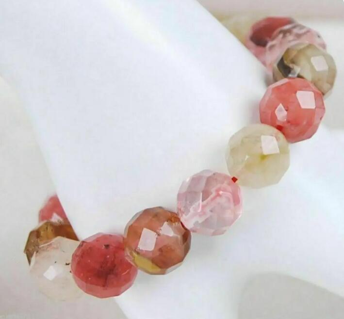 Браслет из бисера с граненым арбузным турмалином диаметром 12 мм, круглый драгоценный камень, 7,5 дюйма