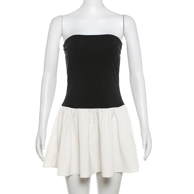 Весенняя женская мода с одним воротником, сочетание цветов, плиссированные узкие платья