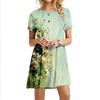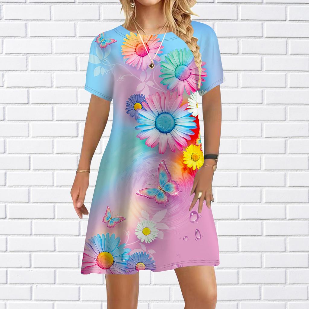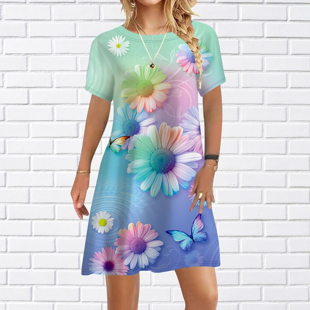 Женское повседневное платье, летние разноцветные платья с цветочным принтом для женщин, платье с коротким рукавом и круглым вырезом, большие размеры