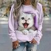 Женский модный свитер с милым котом и 3d принтом, с круглым вырезом и длинными рукавами, пальто с животными, одежда для девочек, аниме, кот, с длинными рукавами, Kawaii, оверсайз