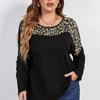 Женская лоскутная рубашка с леопардовым принтом, с круглым вырезом и длинными рукавами, свободная повседневная летняя рубашка, легкая дышащая, удобная модная рубашка для поездок на работу плюс
