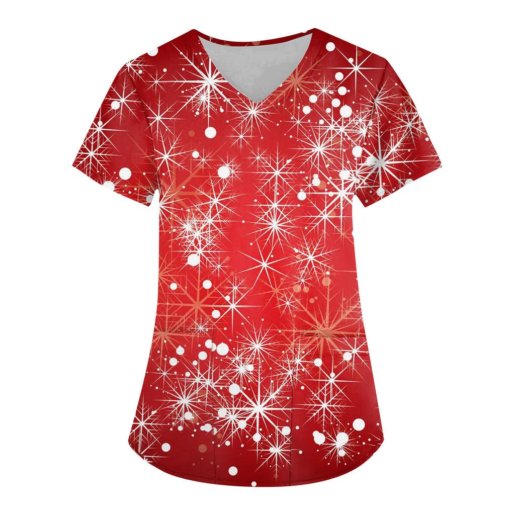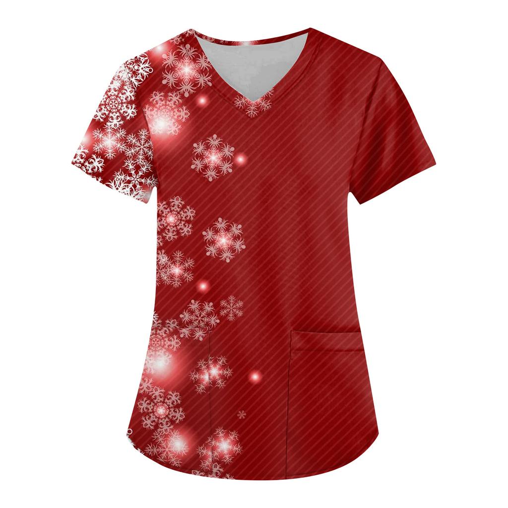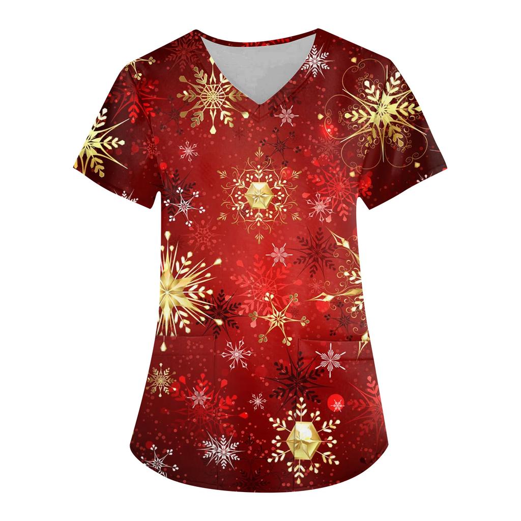 Женская мода с v-образным вырезом, короткими рукавами и карманами, топы с рождественским принтом