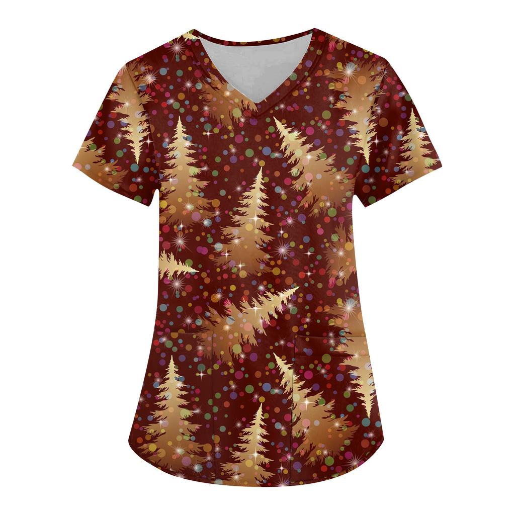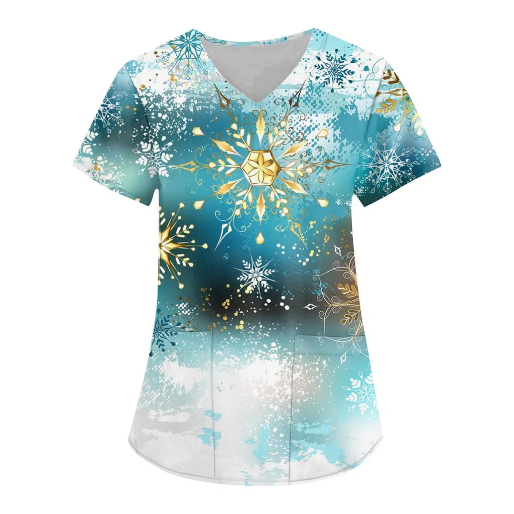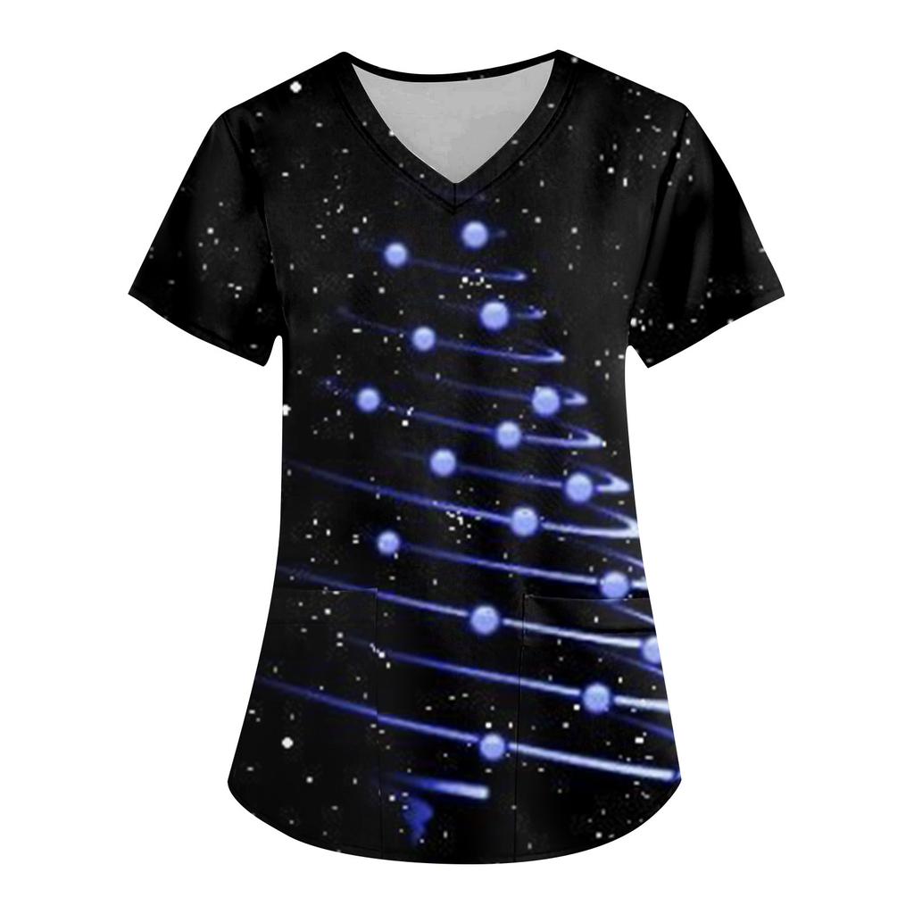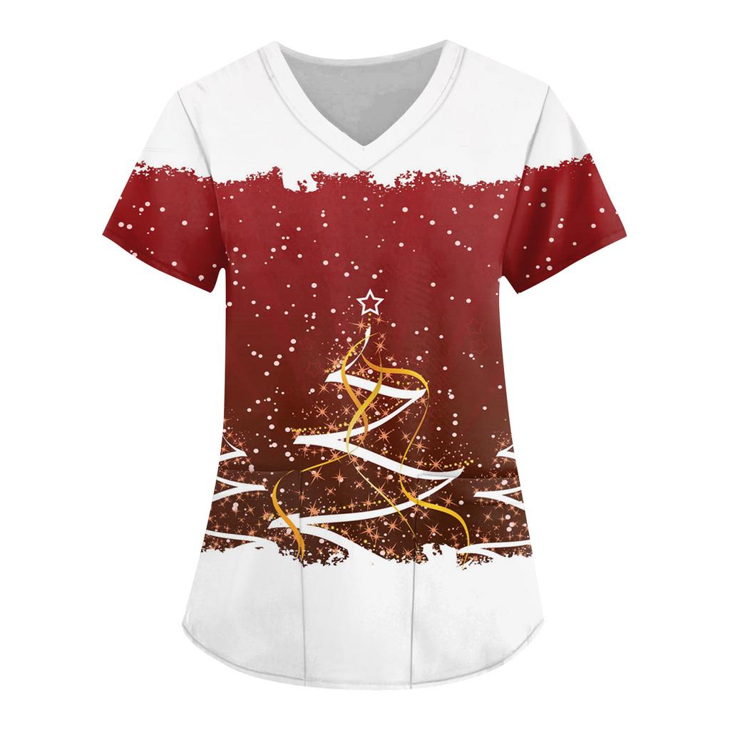 Женская мода с v-образным вырезом, короткими рукавами и карманами, топы с рождественским принтом