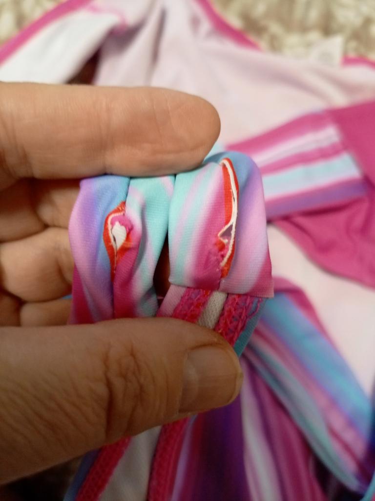 На 50-й размер сел впритык, но цвет совсем не соответствует картинке. Вместо основного яркого фиолетового цвет бледный грязно-голубой, ну и, естественно, совсем не тот вид. Теперь это выглядит как застиранный дешёвый купальник. Я разочарована.