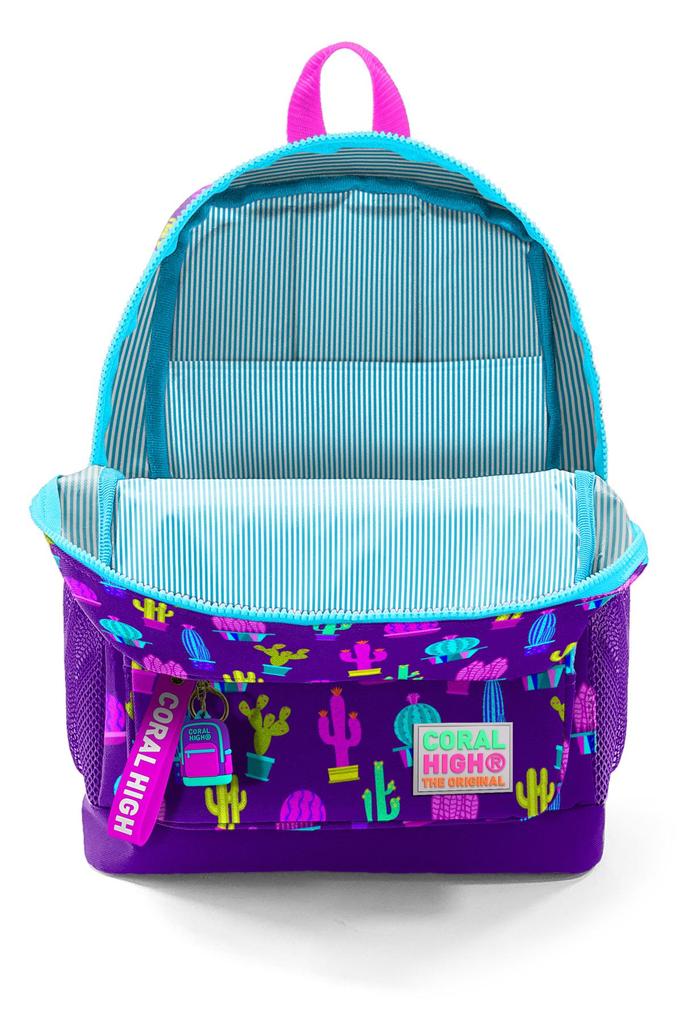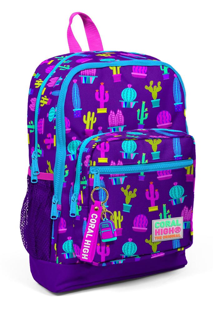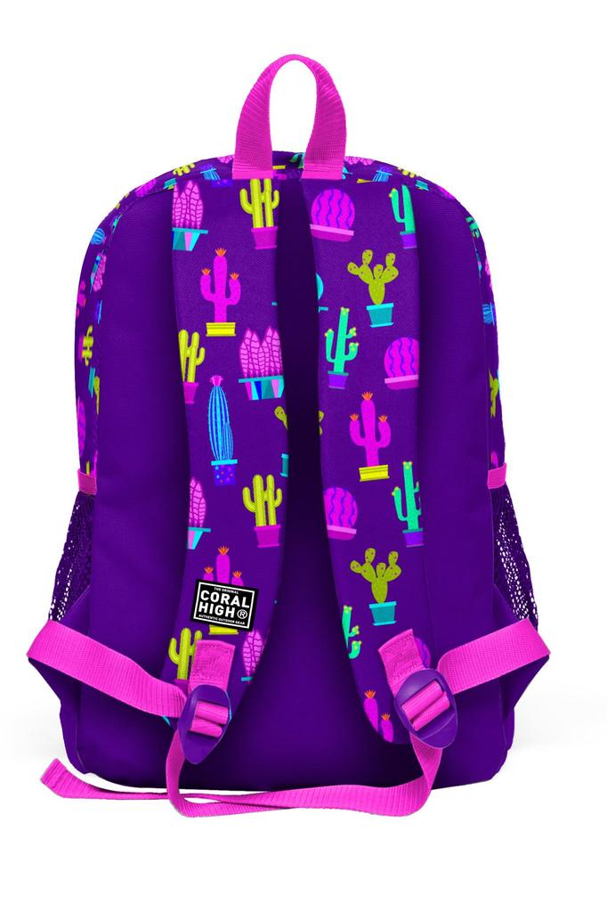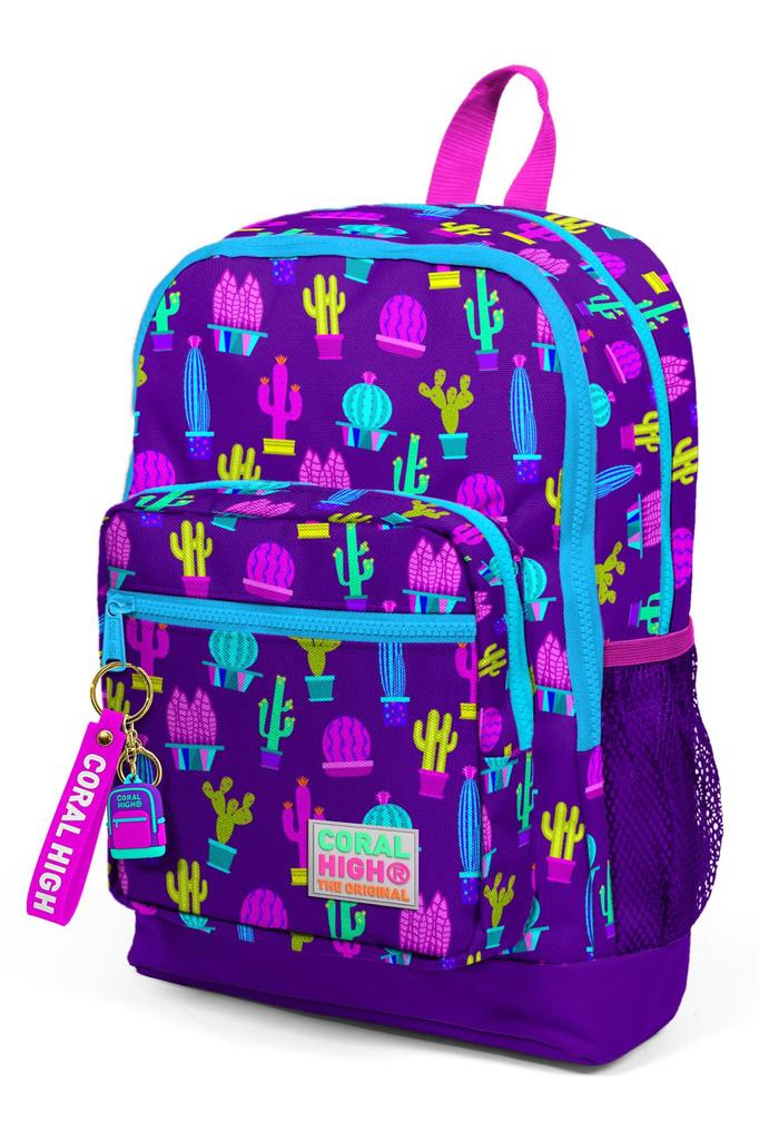 Детский школьный рюкзак с четырьмя отделениями Coral High Kids Purple Pink Cactus Patterned 23108