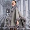 Большая маятниковая шаль из пашмины, женская шаль из искусственного кроличьего меха с воротником из зернистого бархата, уличная одежда, зимнее толстое теплое свободное пончо, накидка