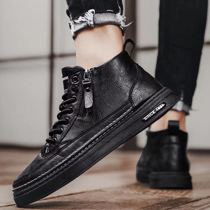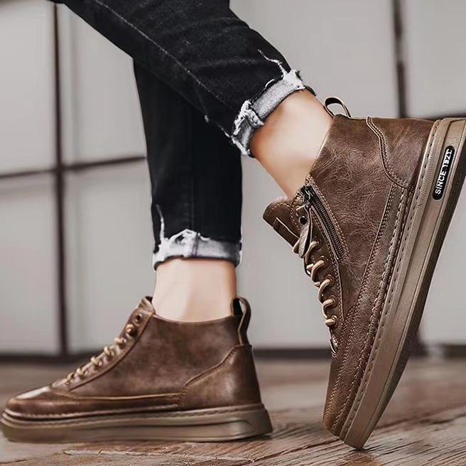 Мужские высокие повседневные кожаные туфли, мужские туфли, нескользящая уличная рабочая обувь