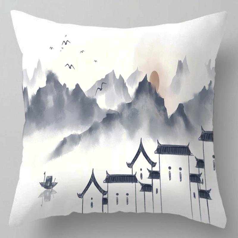 Деревянная подушка на спинку стула, прикроватная подушка татами, офисная подушка для сна, наволочка с пейзажной живописью в китайском стиле
