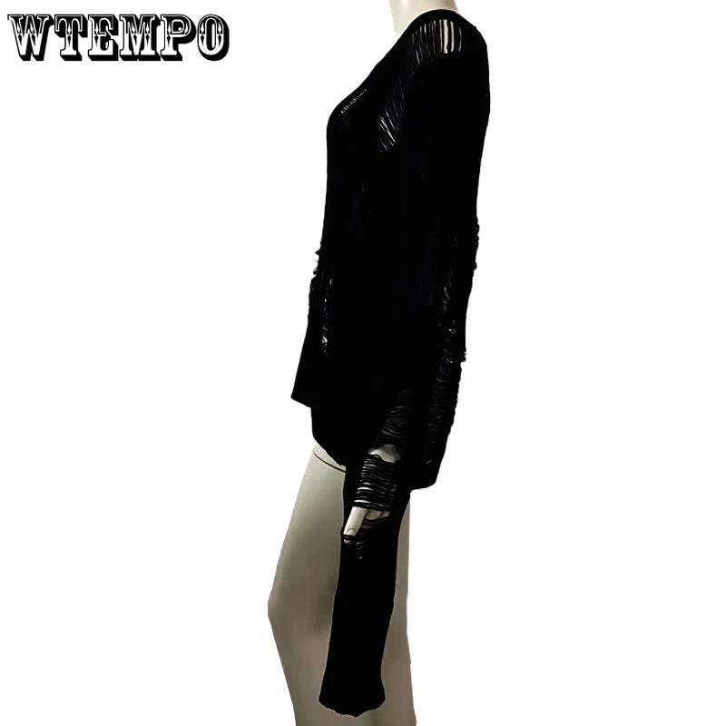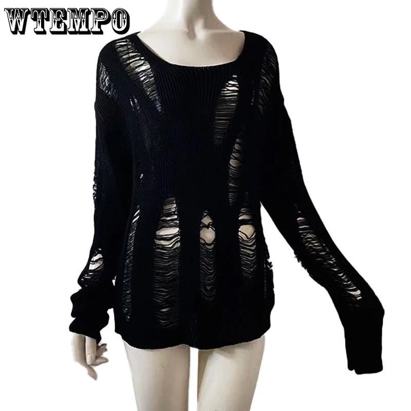 Полый свитер с черной дырой, длинный пуловер неправильного дизайна, свободный повседневный женский топ в стиле панк, уличная одежда в американском стиле Spicy Girl
