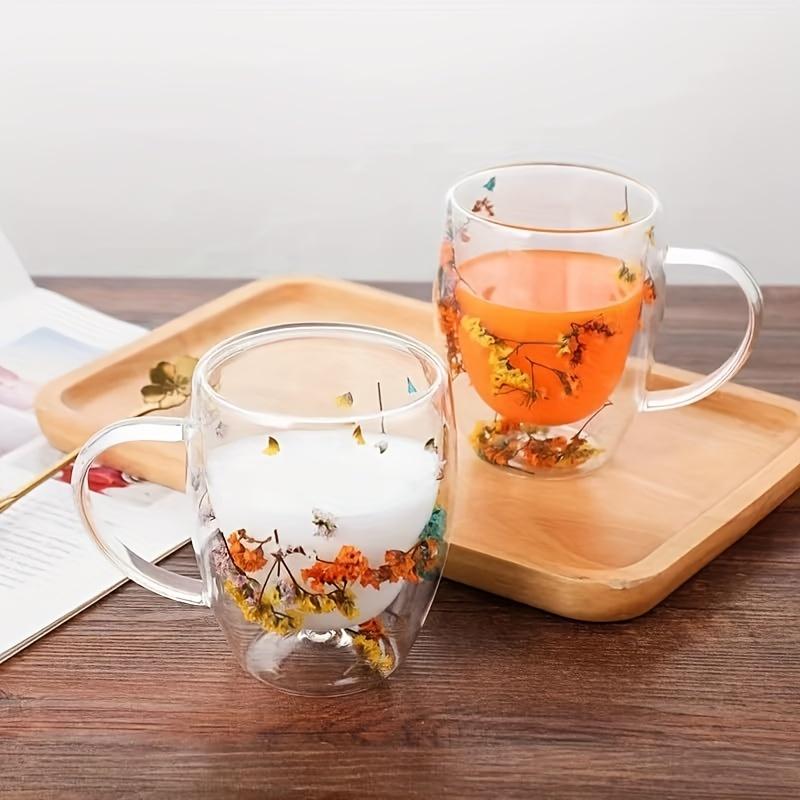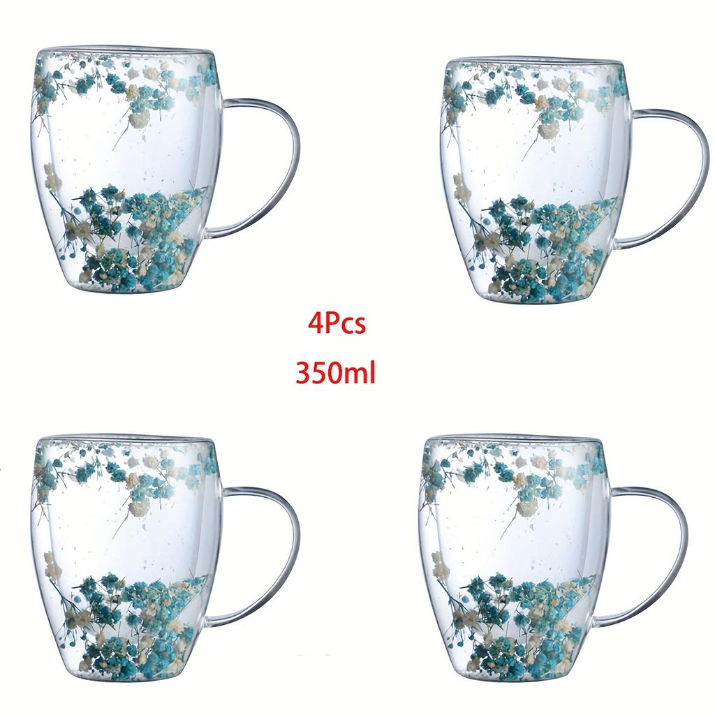 4 шт. Сушеные цветы внутри стеклянных кофейных кружек 11,83 унции Чашки для кофе с двойными стенками для эспрессо Теплоизолированные чашки для воды Лето-зима Посуда для напитков Подарок на день рождения