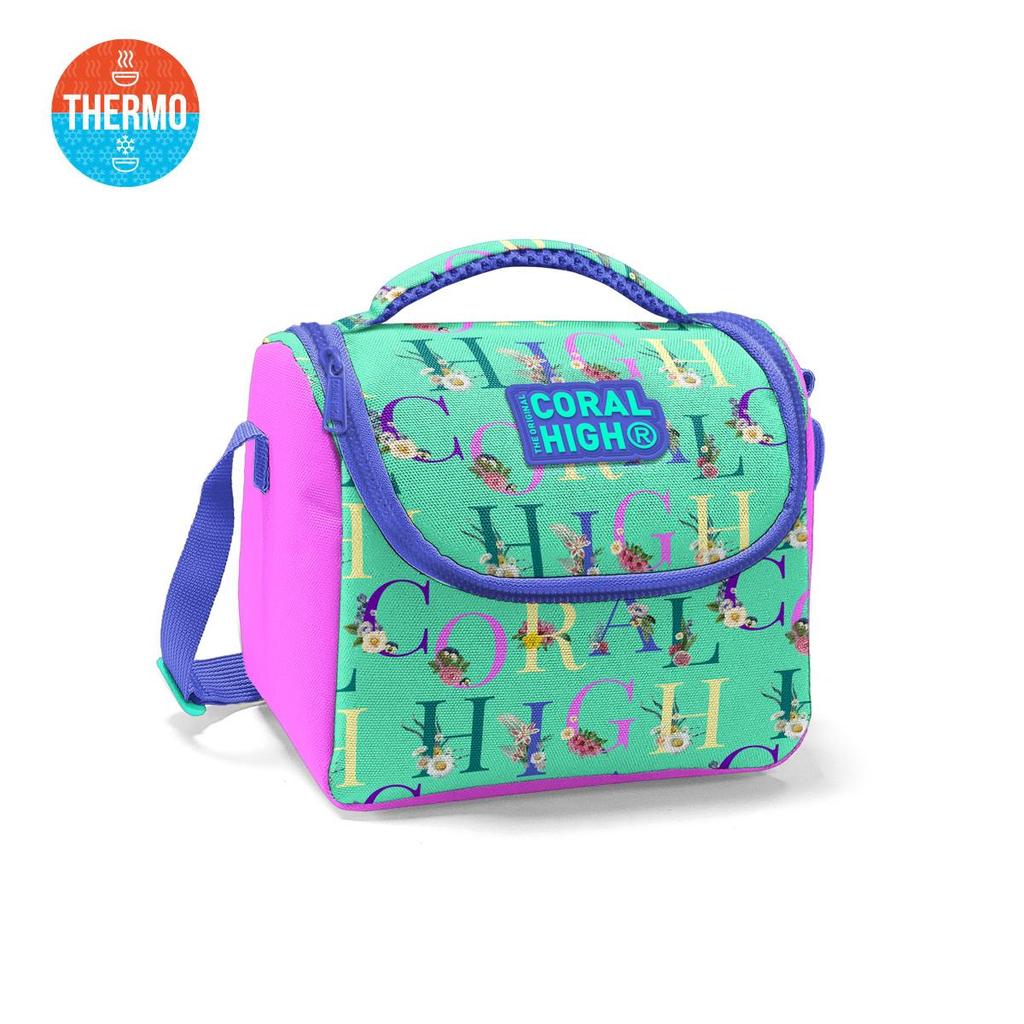 Термобокс для завтрака Coral High Kids Water Green Светло-розовый с монограммой и узором 11823