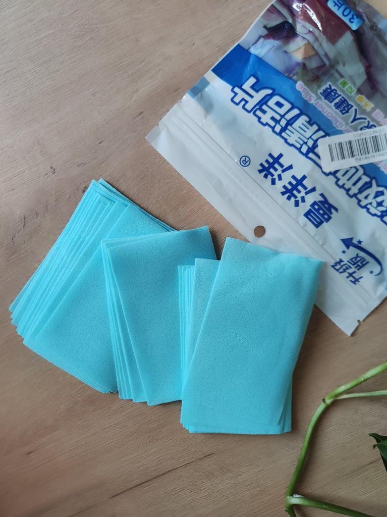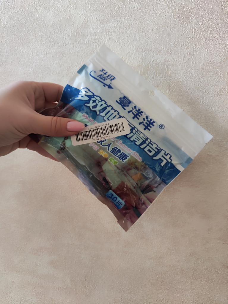 Листочки для уборки. В упаковке 30 штук.можно использовать для мыться пола, сантехники и тд. На ощупь похожи на мыльные розы, которые бывают в подарочных наборах. Пластинки легко растворяюися в воде, вода после этого немного пенится. Использую для чистки унитаза, но написано, что можно даже использовать для стирки в стиральной машине. Запах не резкий, приятный, похож на слабый запах стирального порошка. Доставка около трёх недель до Санкт-Петербурга.