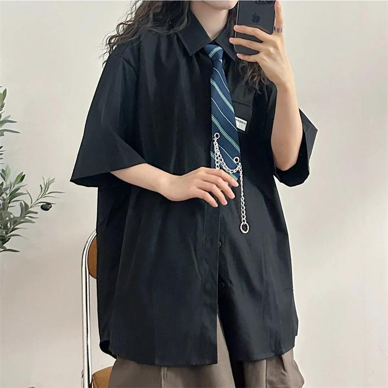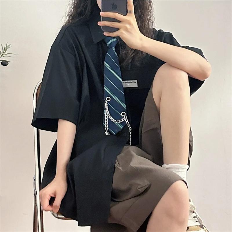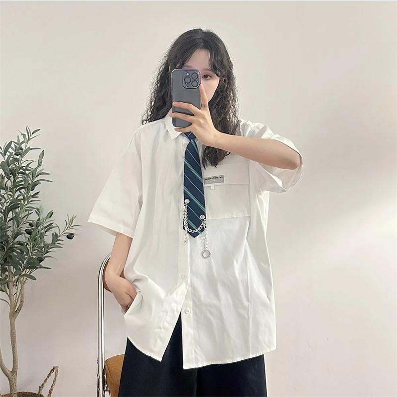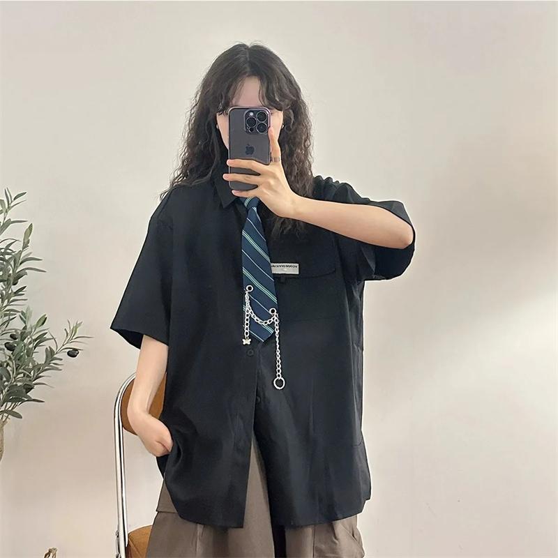 Сплошной цвет рубашки с завязками на цепочке, женская блузка с короткими рукавами, летнее свободное платье Blusas в стиле консервативного стиля