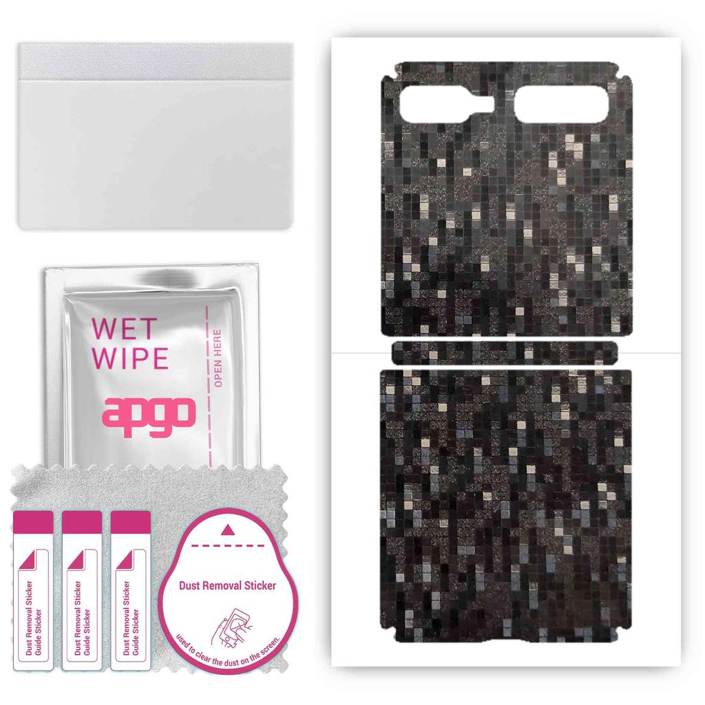 apgo Protective Skin Sticker for the back compatible with Samsung Galaxy Z Flip 5G (first model 5G), Wrap Film, Foil, Vinyl - Pattern Carbon Black Pix
