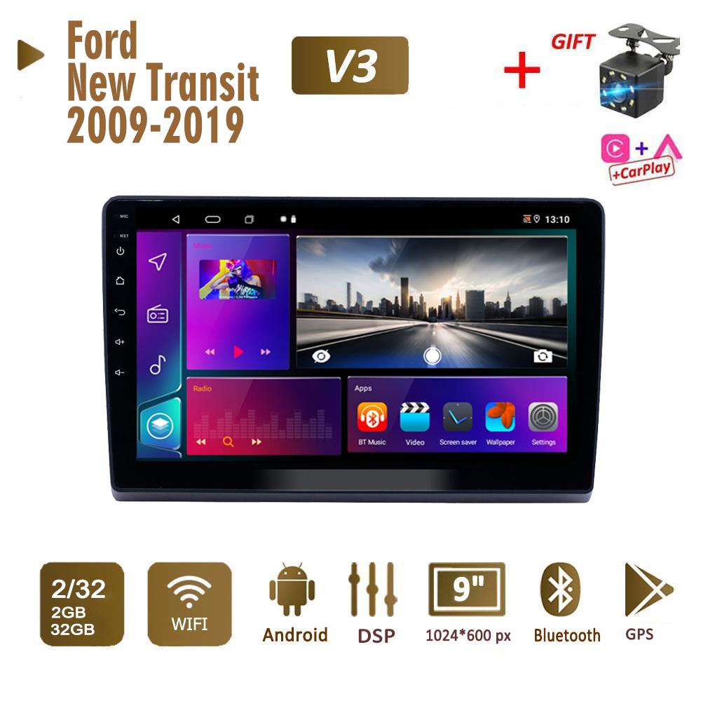 2Din Android автомобильное радио для Ford New Transit 2009-2019 мультимедиа Carplay авто Wi-Fi головное устройство стерео навигация 2 + 32 ГБ