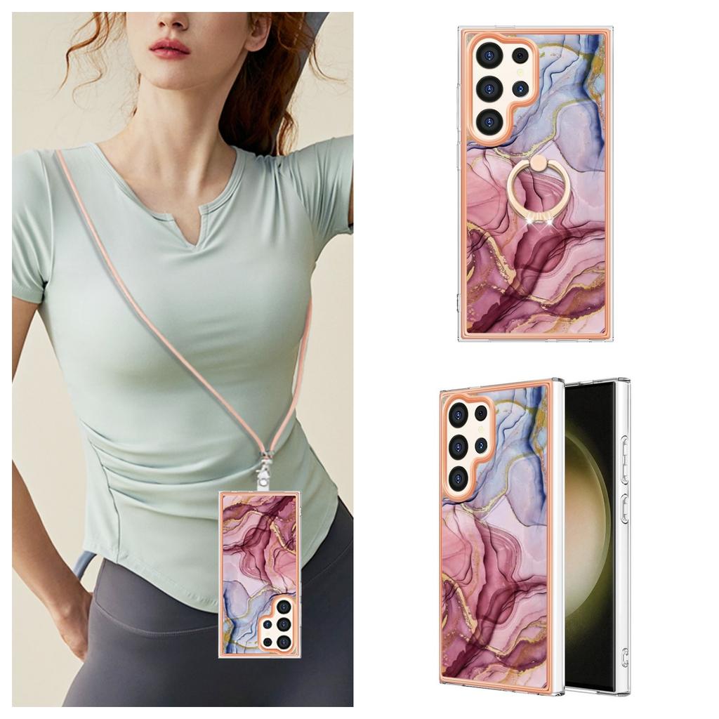 Розово-красный мраморный ремешок со съемной пряжкой, кольцо против падения или мягкий чехол для телефона с гладким дизайном для Samsung iPhone Redmi Oppo Moto Honor Google Sony...