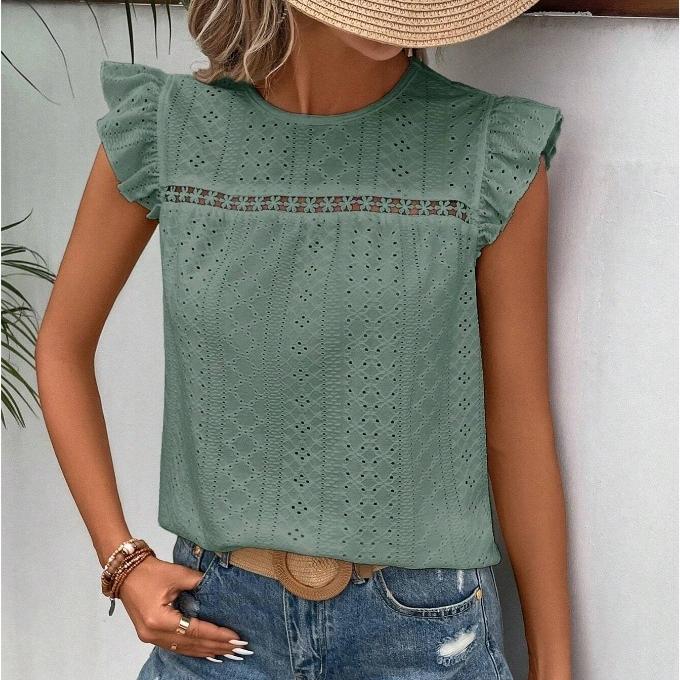 IHUASU Женская летняя кружевная однотонная блузка с коротким рукавом и круглым вырезом в форме лотоса, женская