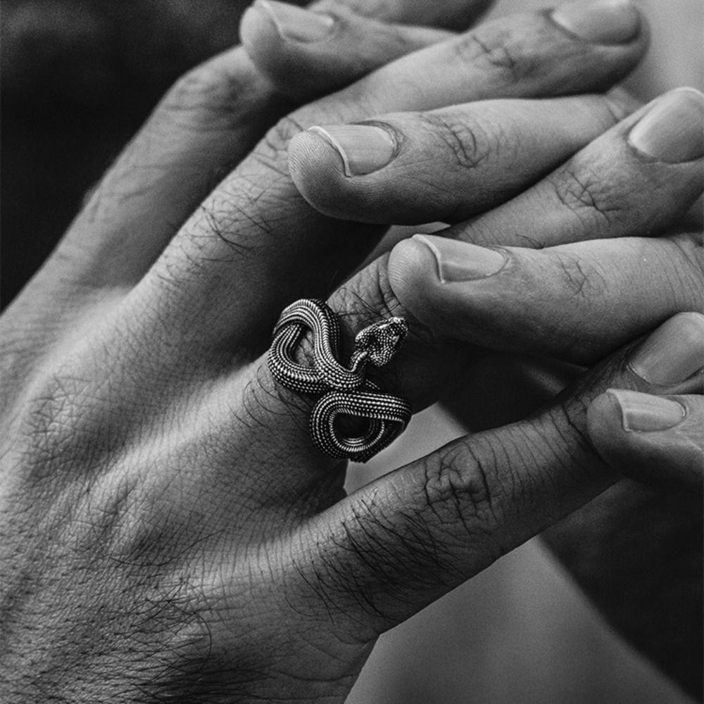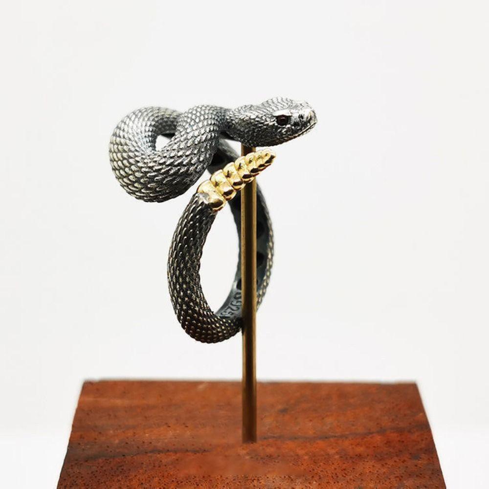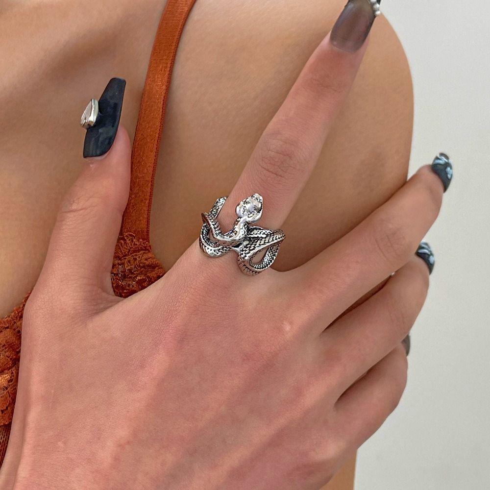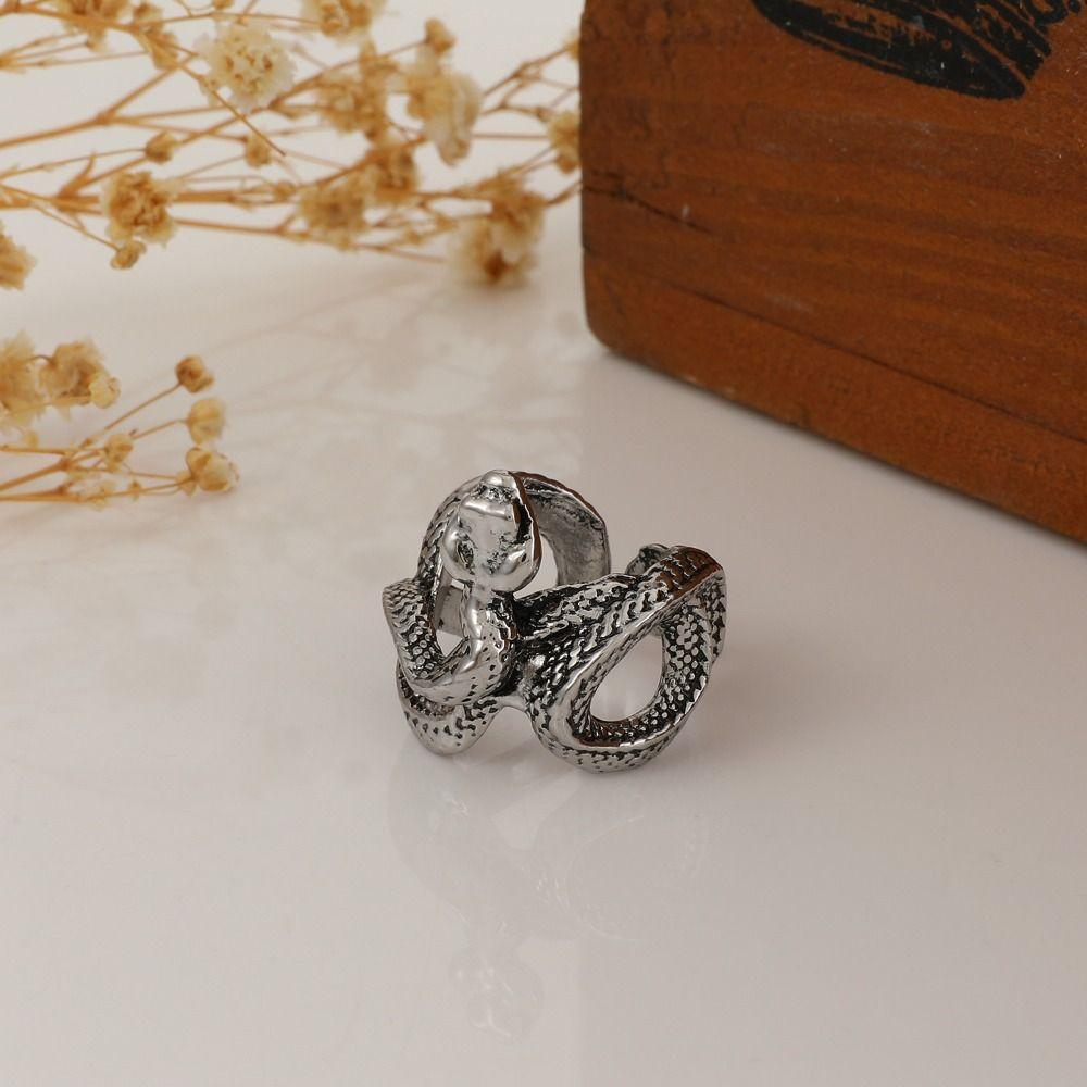 Рок-черное животное, индивидуальность, мужское открывающееся кольцо, серебряное кольцо со змеей, ретро-цинк, кольцо из сплава цинка, ювелирные изделия в стиле хип-хоп