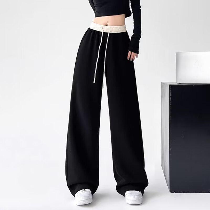 Спортивная женская одежда, весна-лето 2024, новые черные прямые свободные повседневные спортивные штаны с высокой талией, широкие брюки на шнурке — купить товар онлайн с бесплатной доставкой до всему миру!