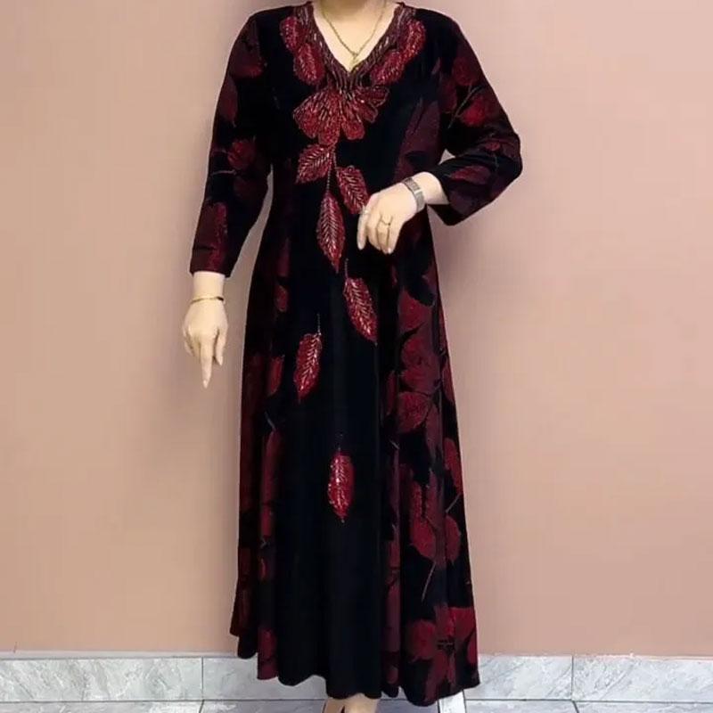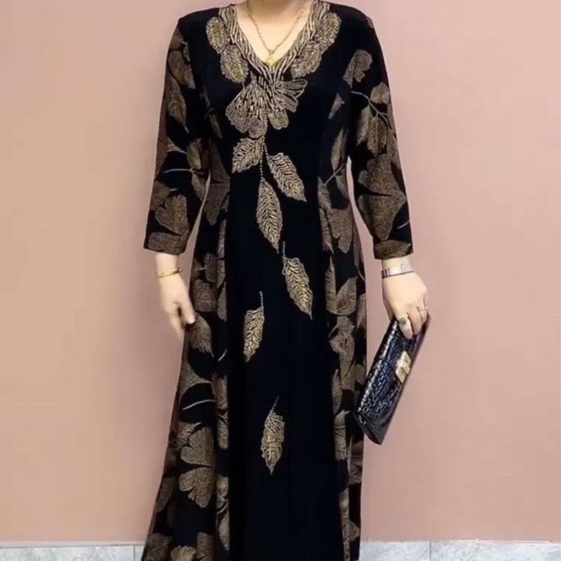 Женская одежда, элегантные платья с v-образным вырезом, осень-зима, повседневное трапециевидной формы с талией, винтажный принт, модное длинное платье с бриллиантами