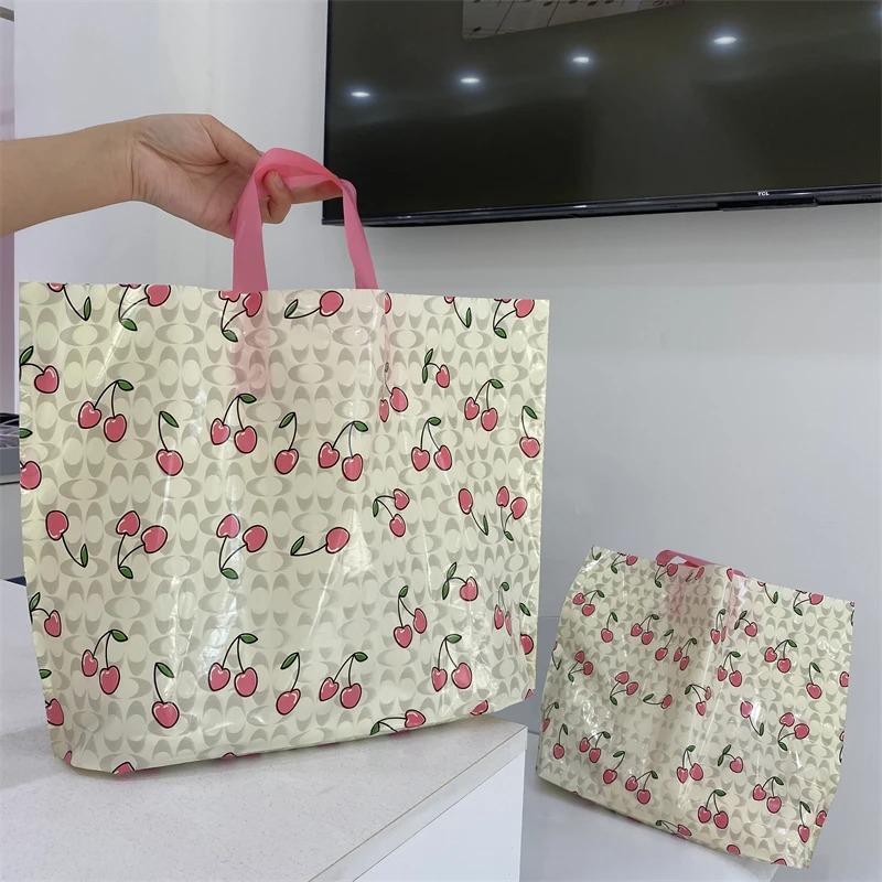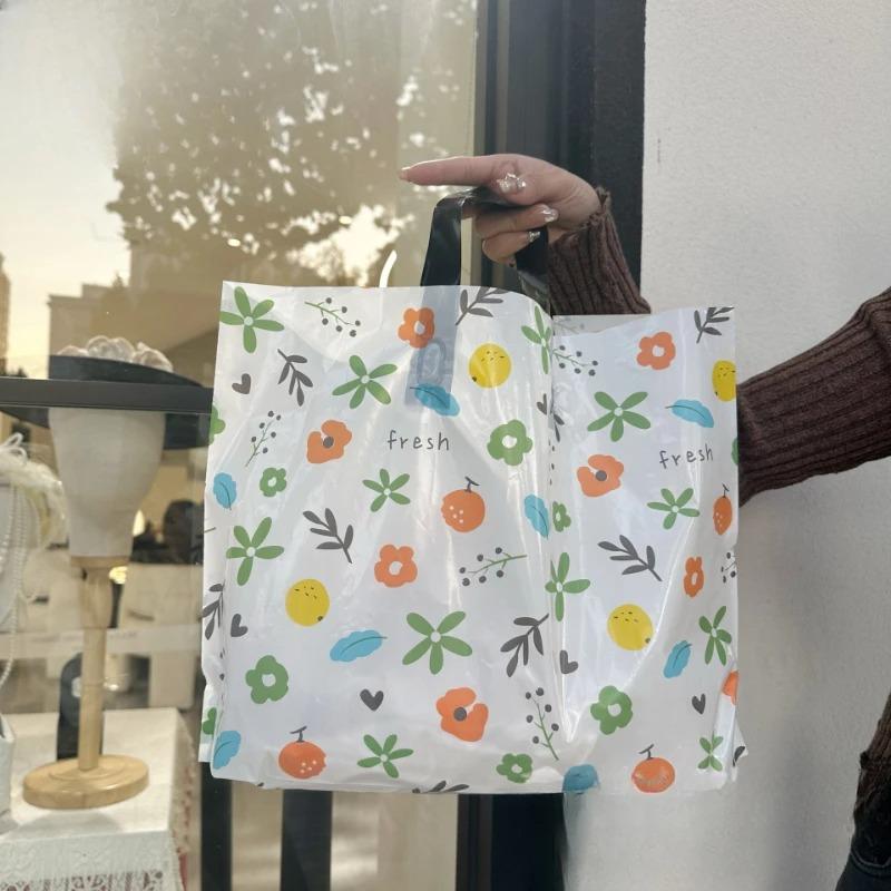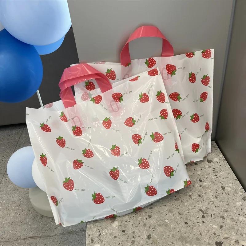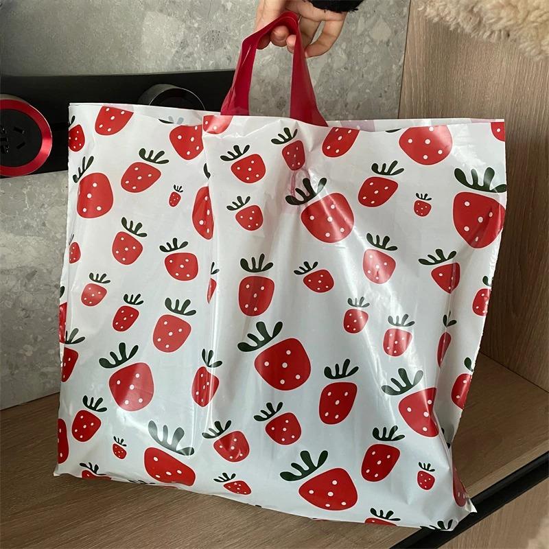 50 шт., сумки для одежды, пластиковые, толстые, прочные, прочные, портативные, сумки для покупок разных размеров, подарочная косметичка с принтом фруктов, сумка для упаковки