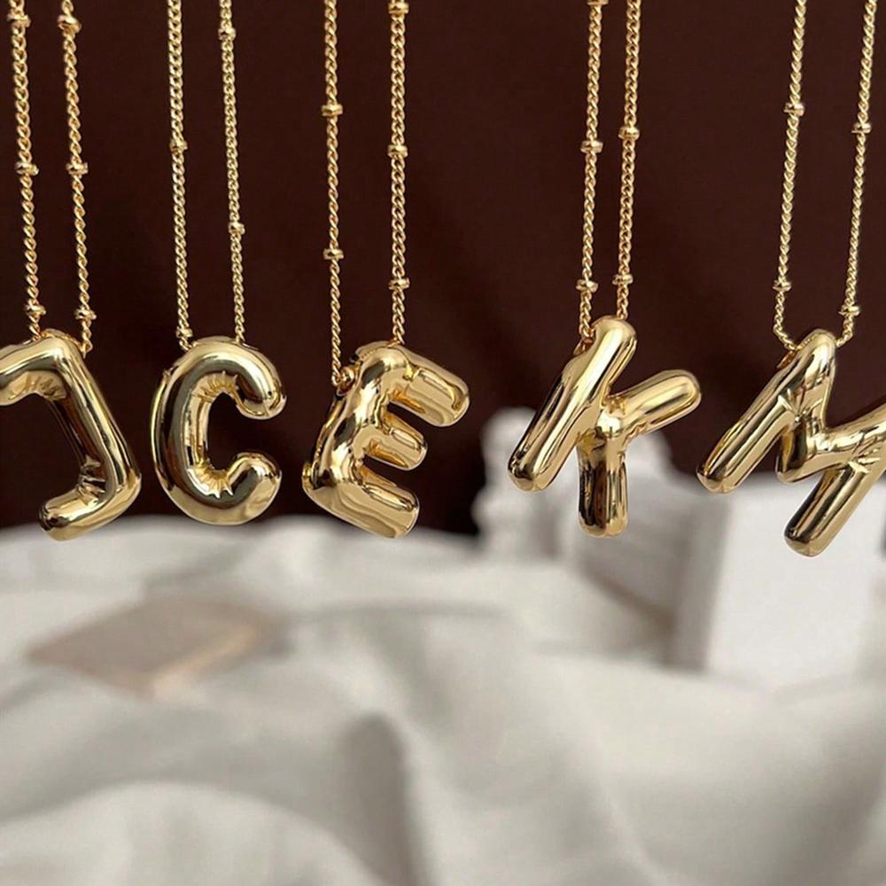 Винтажное ожерелье с подвеской в виде воздушного шара и массивных букв для женщин, золотого цвета, 26 английских букв, инициалов, ожерелья, ювелирное изделие, подарок — купить товар онлайн с бесплатной доставкой по всему миру!