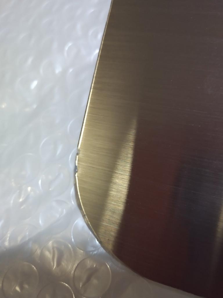 Добрый вечер! Получила разделочную доску в сборной посылке. Долго на нее смотрела и наконец-то решилась. Доска классная, хватит пластиком питаться, частички которого режутся ножом и попадают с продуктами в организм. Можно горячее на нее поставить, тесто раскатать. И выглядит прилично. Имеется маркировка качества стали. Единственное что озадачило, так это погнутый уголок, - вовремя перевозки видимо перестарались. Что интересного, остальные заказы не пострадали, хоть и хрупкие, а тут металл погнулся. Пыталась выпрямить, не получилось, не хватило силы. 🤷 Если повернуть отогнутым уголком вниз, то будет царапать стол и лежать на нем неровно. Хоть и был упакован в пакет с пупырышками, но и он не помог. Спасибо за оформление и доставку!