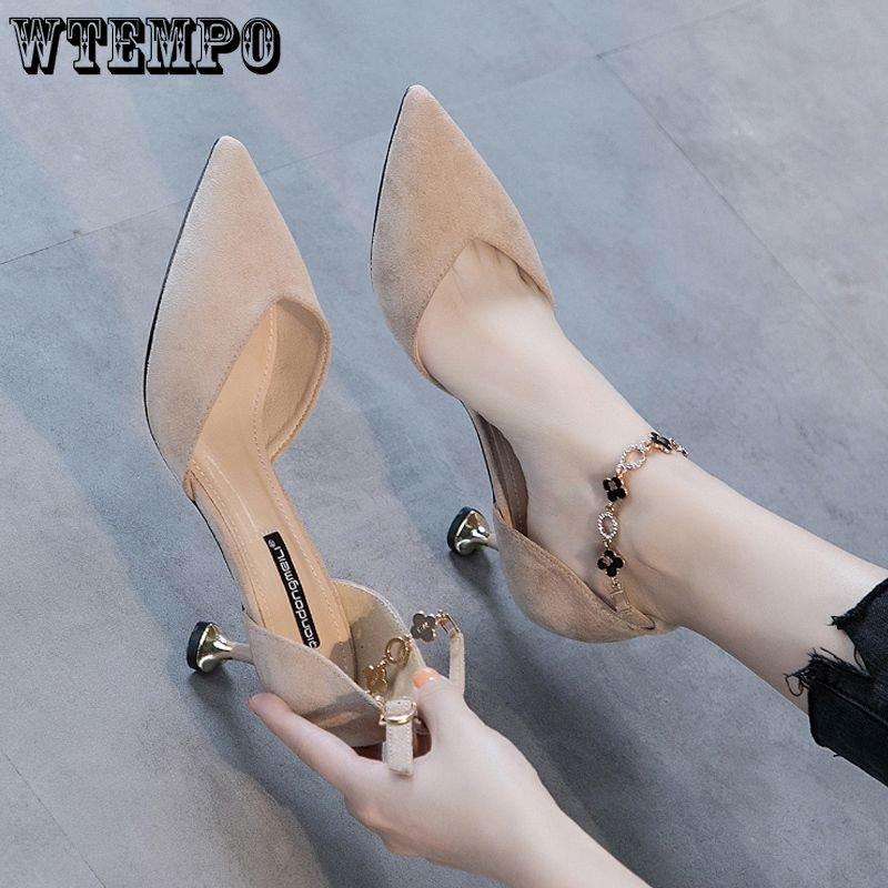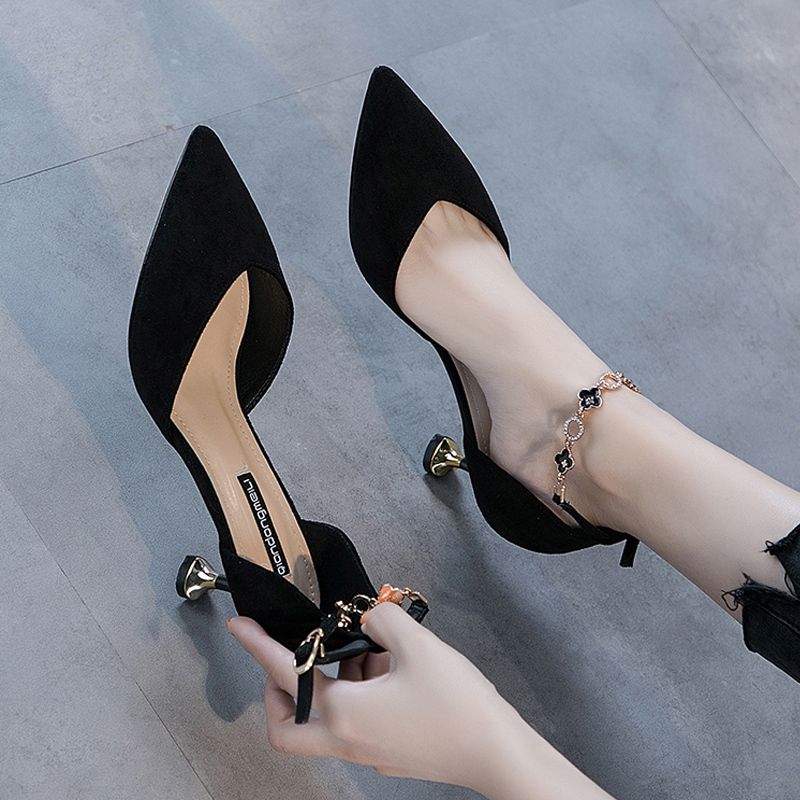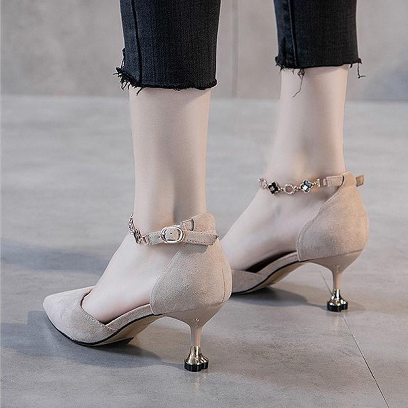 Модные сандалии на тонком каблуке с пряжкой и ремешком, женские весенне-летние замшевые босоножки на среднем каблуке, универсальные туфли на высоком каблуке в упаковке