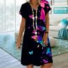 Летнее модное платье с v-образным вырезом, женское платье с коротким рукавом и принтом бабочки и луны, свободное повседневное платье для женщин