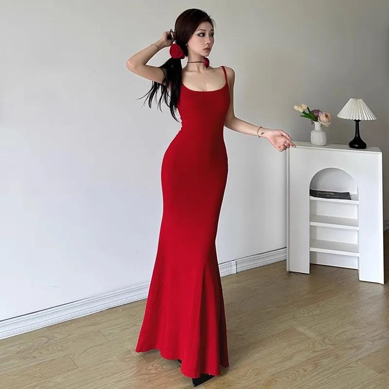 Черное, красное платье макси, женское элегантное платье с открытой бабочкой и бабочкой в стиле ретро, платье без рукавов на подтяжках, женское длинное платье с талией, сексуальное платье для девочек