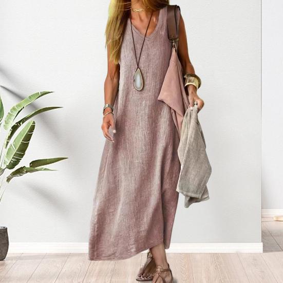 Летнее женское платье с V-образным вырезом без рукавов, свободный жилет до щиколотки, чистый цвет, пуловер трапециевидной формы, пляжное платье макси для отдыха — купить товар онлайн с бесплатной доставкой до всему миру!