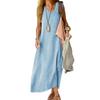 Летнее женское платье с V-образным вырезом без рукавов, свободный жилет до щиколотки, чистый цвет, пуловер трапециевидной формы, пляжное платье макси для отдыха
