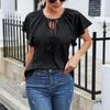 Летние женские топы, пуловер с короткими рукавами, однотонная футболка с вырезом, милый топ на шнуровке с воланами