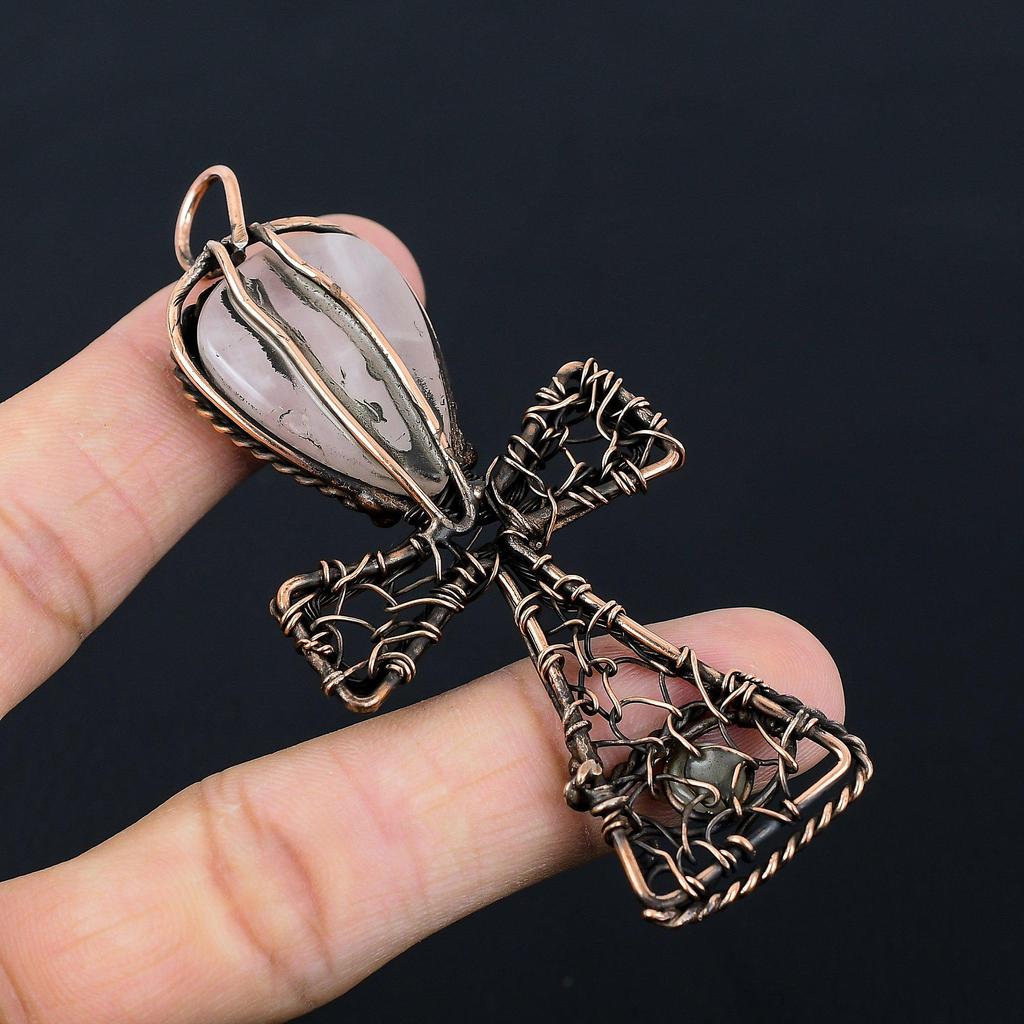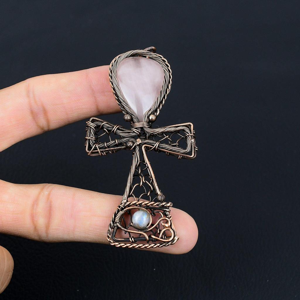 Розовый кварц и лунный камень, драгоценный камень, обертка из чистой медной проволоки ручной работы, красивая ювелирная подвеска