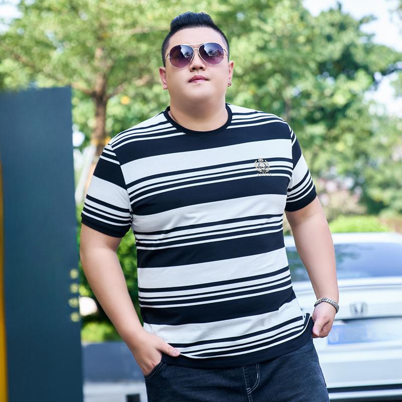 Толстая мужская футболка больших размеров с круглым вырезом и половиной рукавов, тонкая трендовая полосатая футболка с половиной рукавов, хлопковая летняя тонкая рубашка — купить товар онлайн с бесплатной доставкой по всему миру!