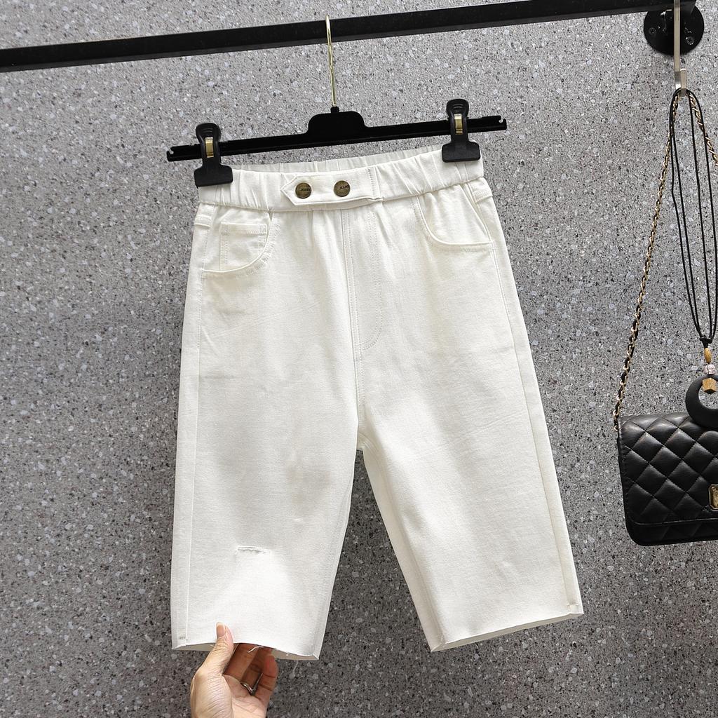 DIMANAF Большие размеры Женские брюки Летние короткие джинсы Джинсы с эластичной резинкой на талии Свободные брюки Базовые шорты с отверстиями и высокой талией — купить товар онлайн с бесплатной доставкой по всему миру!