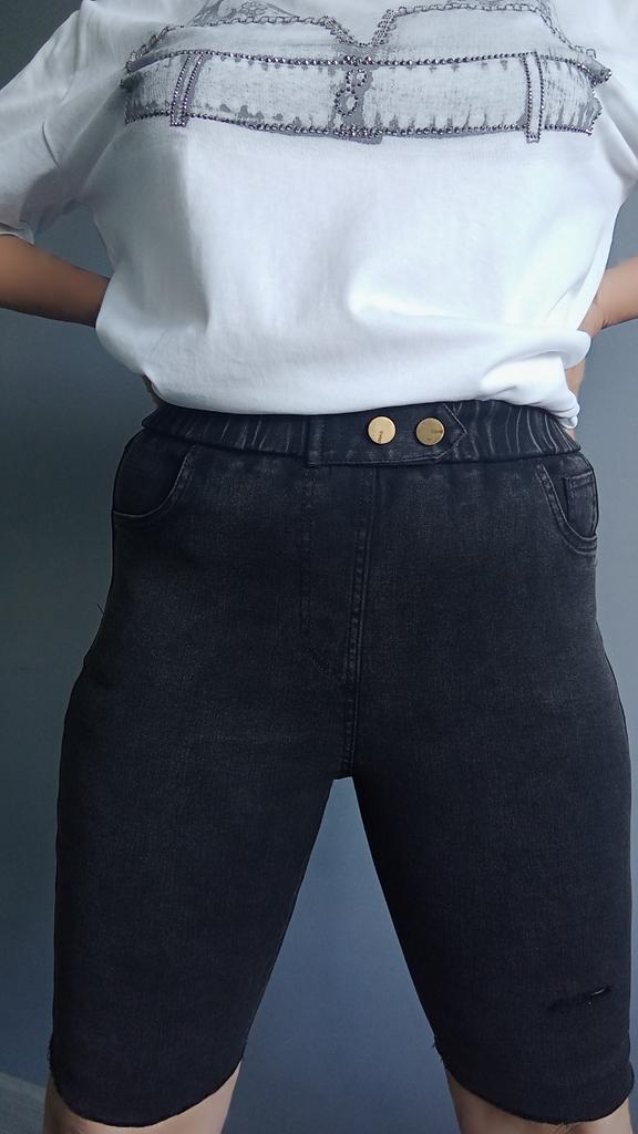 Джинсовые велосипедки Продавец позиционирует их, как шорты. В моем понимании, шорты- это короткие и широкие брюки). Эти штанишки я бы отнесла к разряду велосипедок, то есть - облегающие фигуру бриджи. Если вы хоть раз покупали у этого продавца джинсы - леггинсы, вы поймёте, что из себя представляют эти шорты. Те же самые джинсы - леггинсы, но обрезанные ). 📌Нижний край не обработан, на одной штанине разрез. Но от неточности описания штаны хуже не стали. Мне они очень нравятся! Идеальны для прогулок, езде на велосипеде, активного образа жизни. Сидят, как влитые! 📌Высокая посадка, на талии широкая резинка, которая не перекручивается. Джинса с большой долей эластана, отлично тянется. Пошив фабричный. 📌Два цвета на выбор. На мне размер 2 XL. Мои параметры рост 167, 96-82-98. 📐Замеры: ОТ 66-90 ОБ 92 Высота посадки 28 Длина внутреннего шва 23 Длина 50 Ширина брючины внизу (полуобхват) 19 Ширина брючины в районе бедра (полуобхват) 25,5